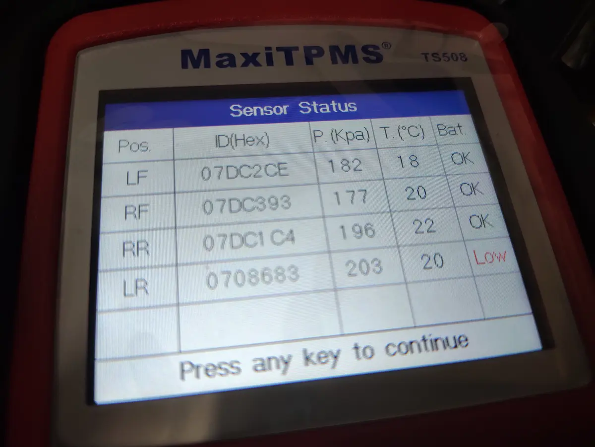 10/03/2026 10,615 miles One tyre pressure sensor battery is low, recommend replacing all 4 wheel sensors when tyres are changed as they will all be the same aga. - Urgency: Amber |